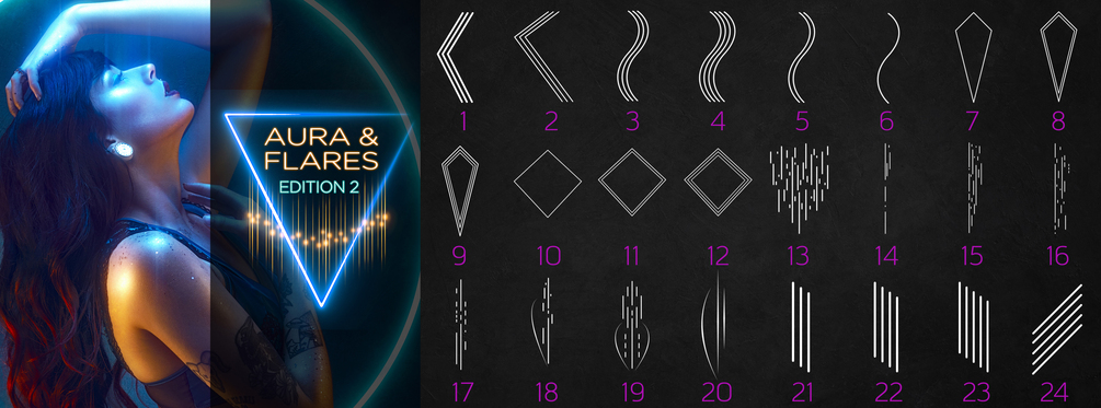 This second set of Auras and Flare brushes work well in conjunction with Edition 1 or the AuraHex set of brushes to create a world of glow and light in your artwork.